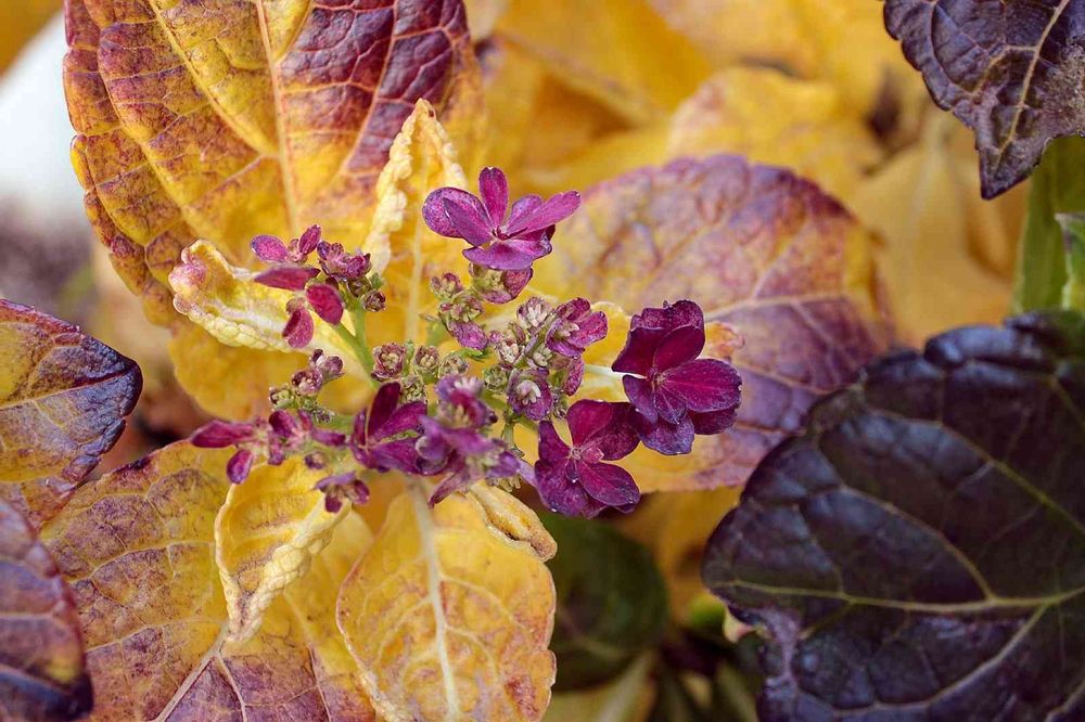 秋の紫陽花モミジ🧡
