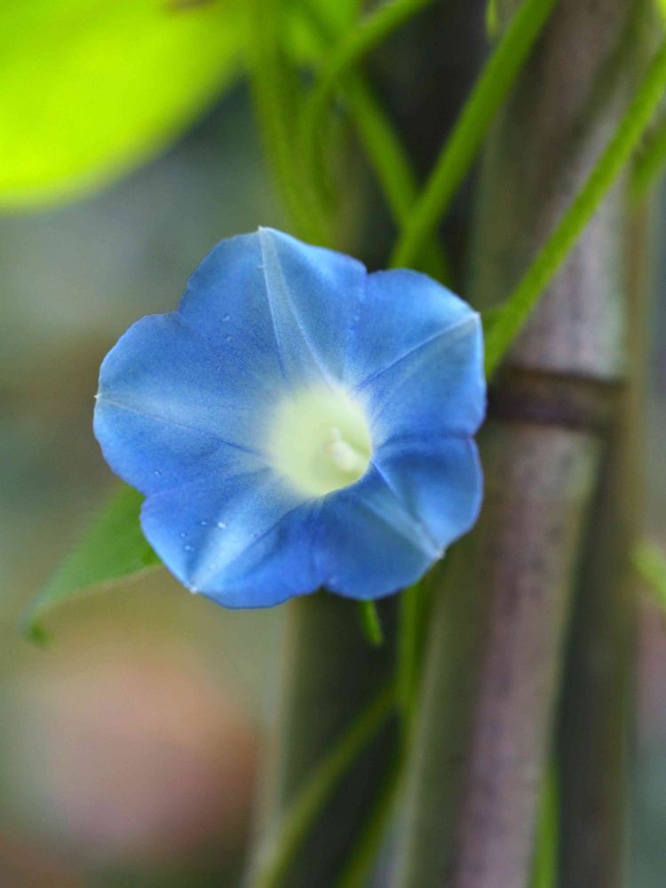 こぼれ種から咲いたちょっとイビツなチビ朝顔