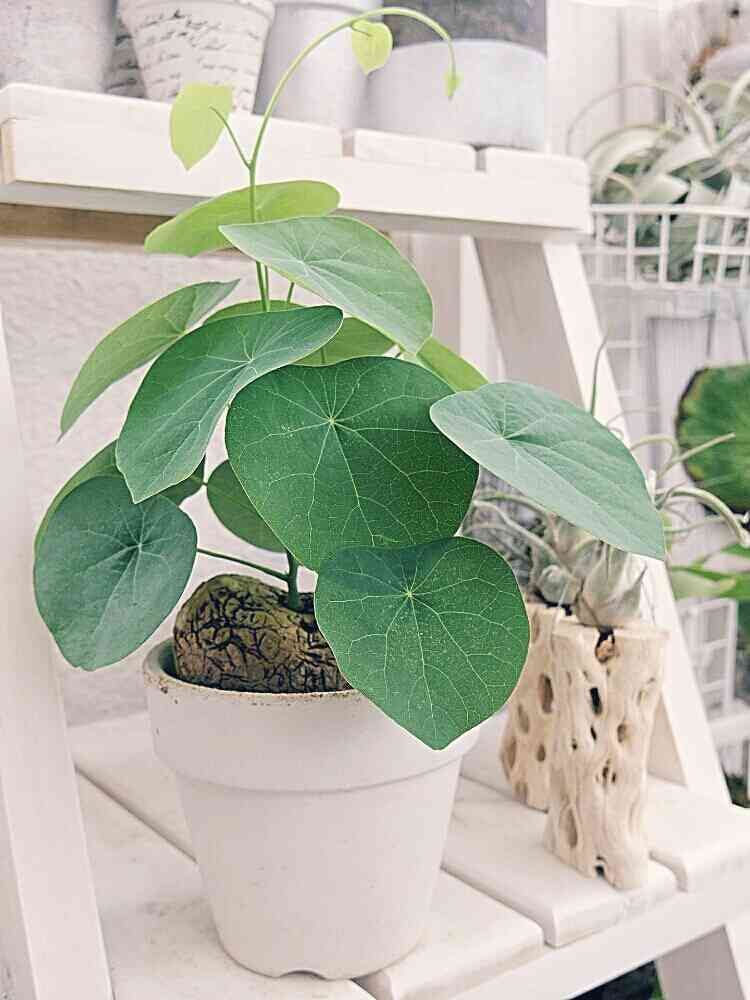 どっしりした個性的な塊根部分と薄くて繊細な葉のバランス感が堪らない❤