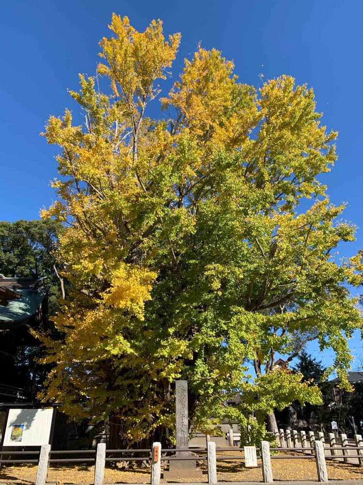 葛飾八幡宮横に幹囲10.8mのイチョウが紅葉の見頃でした😄