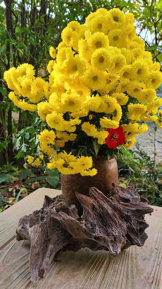 綺麗に菊生けて流木も尚良く見えるね✌👌🙆👏👏👏