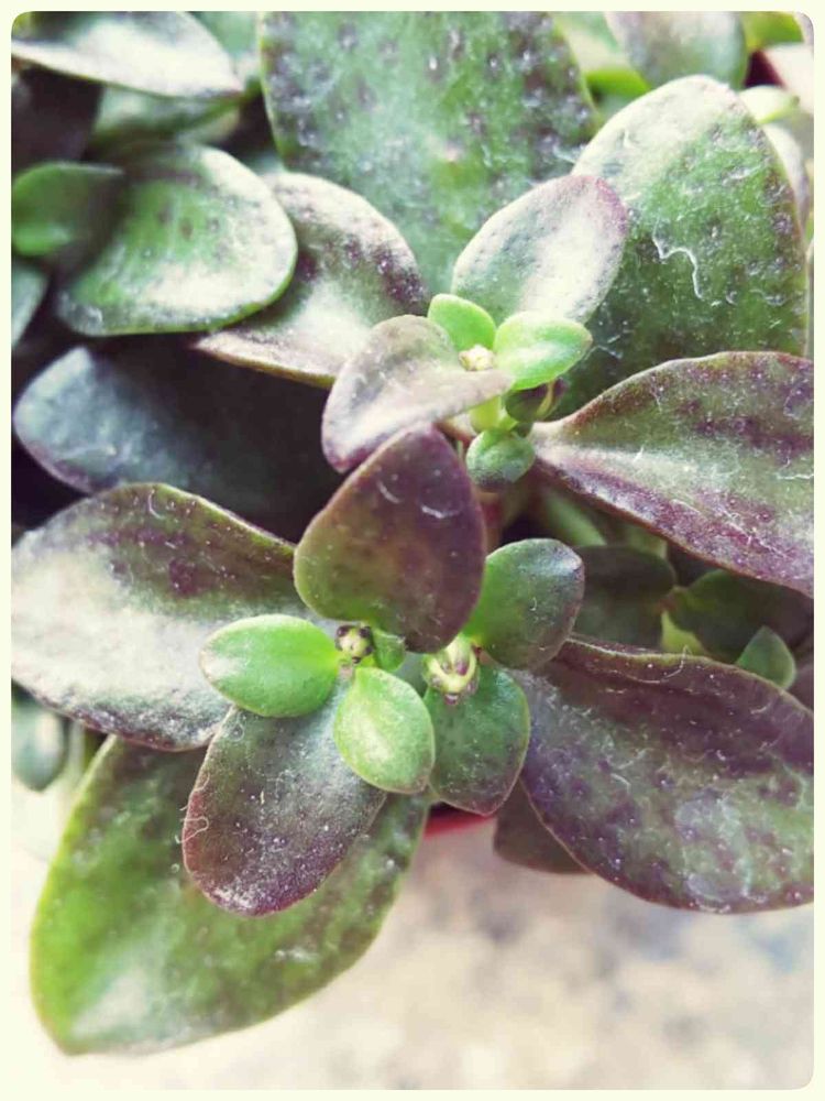 クラッスラらしいこの模様が好きで一目惚れ💕一昨日連れて帰って、やっと今日ゆっくり見れたら花芽発見✨