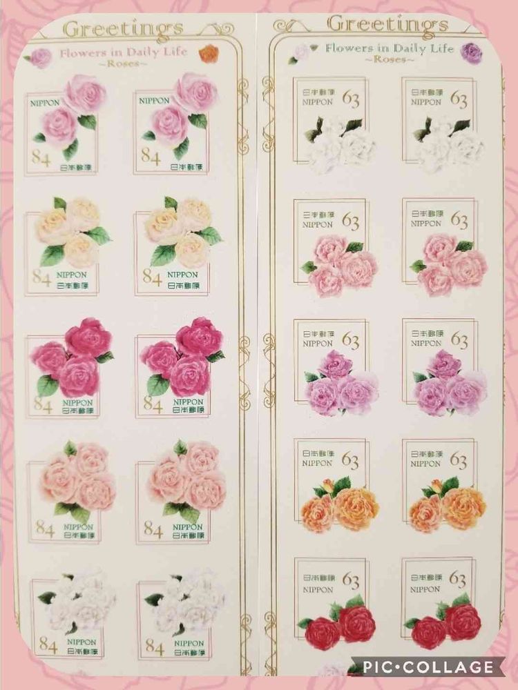 いつも年賀状を出せない方へお便りするのにこのような切手を用意していたのですが、今年のはバラ🌹で嬉しくなっちゃいました💕