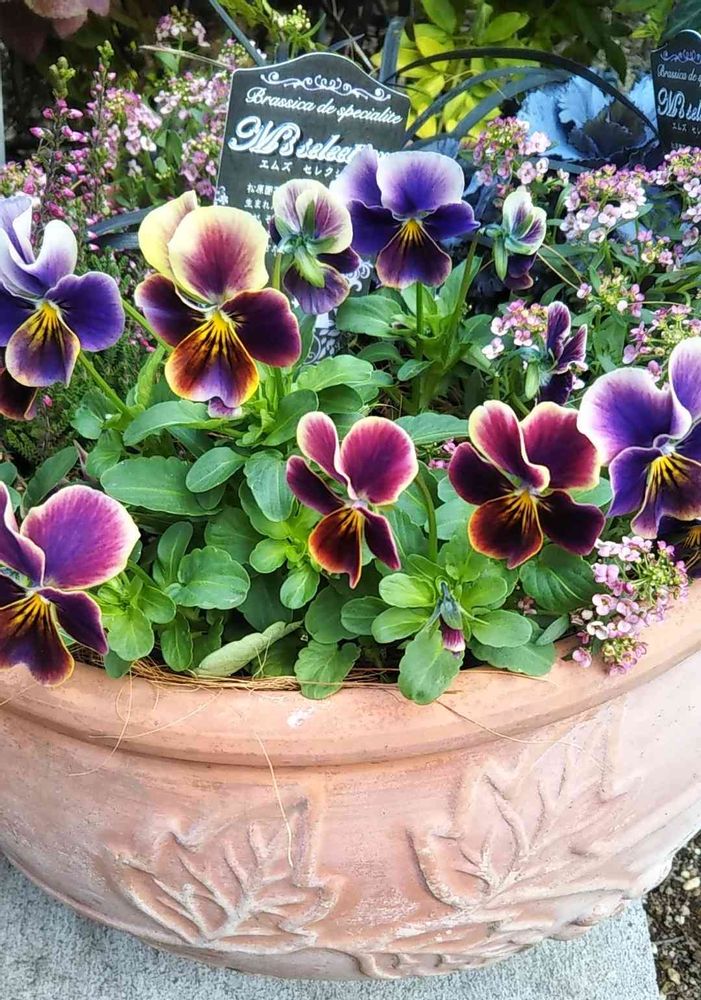 連休に寄植えしたM 's コレクションビオラが咲きそろってました〜🎶