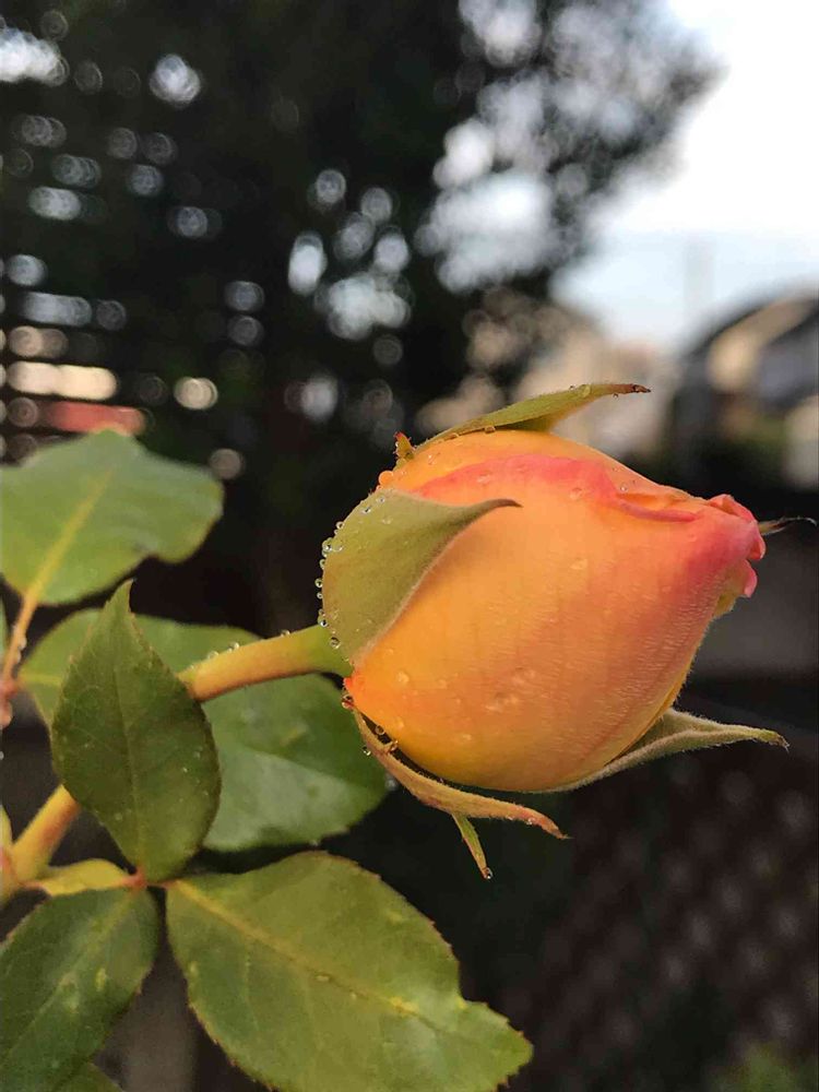 寒い朝です。秋色の蕾、桃🍑のような蕾