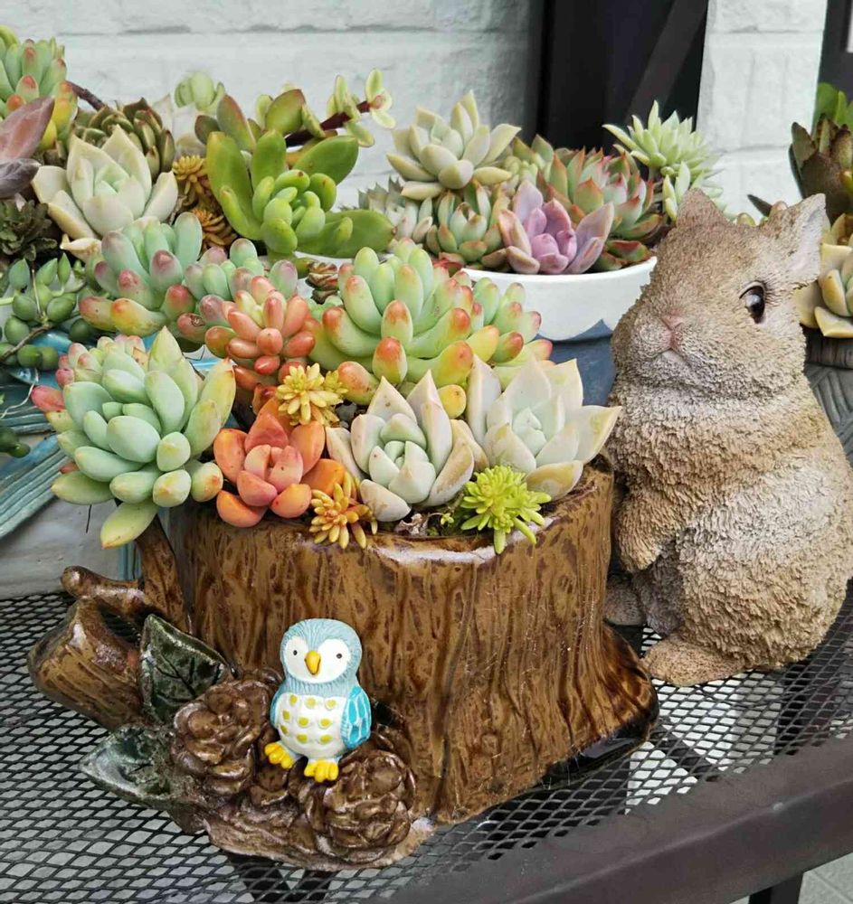 切り株鉢の前にちょこんと可愛いフクロウちゃん🦉