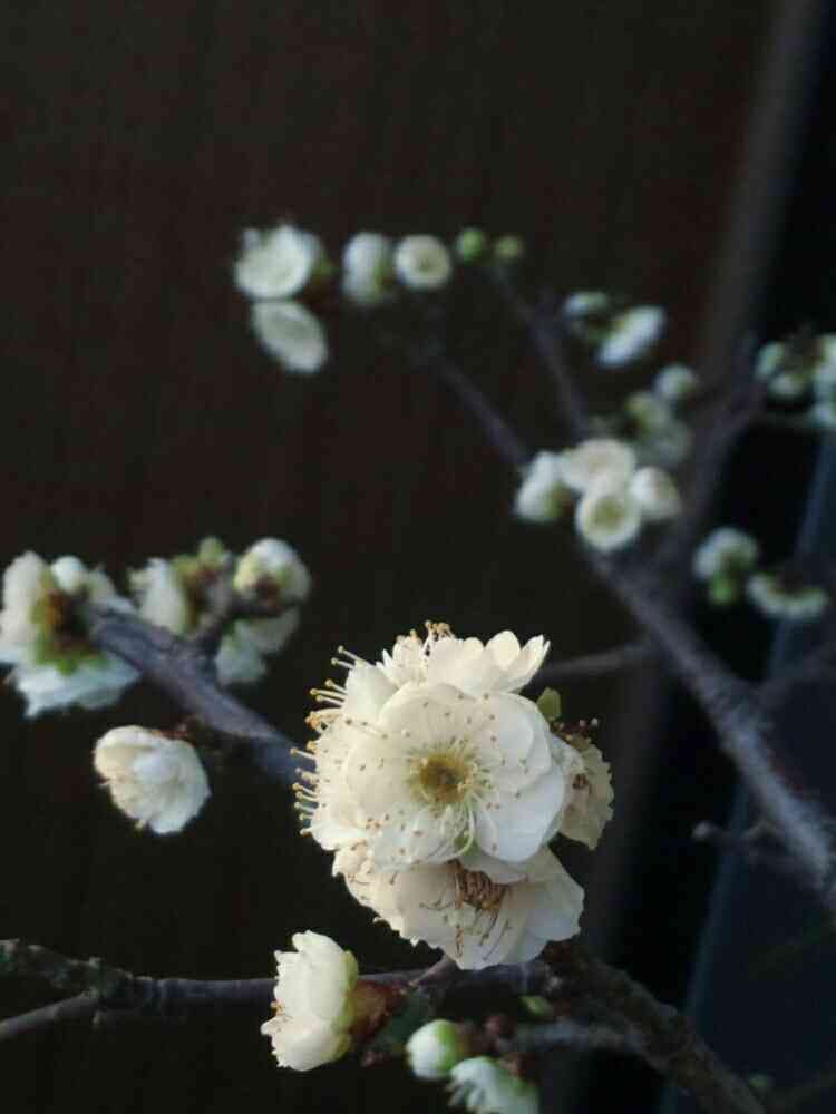 雪の日つぼみだった枝垂れ梅が咲きました♪