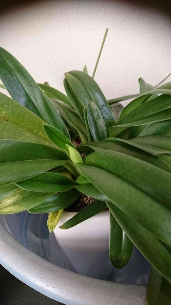 「わたくし4年前の11月にあなたにJA洋らん即売会1000円でつれてこられたパフィオペディラム ツヤイケダ コイソというもんです。そうあなたが植え替えもせずそのまま放置して牧草呼ばわりしていたそのわたしです。」「中心にいつもとちがうもんがあったんで気がついてくれたんですね。100均ショップキャン・ドゥのデカい洗い桶に置きっぱなしにされずーっとあなたがくるの待ってました。」