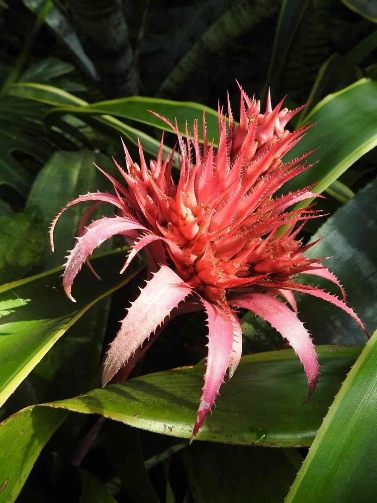 温室の中で見た❗赤い綺麗な🏵シマサンゴアナナス🏵