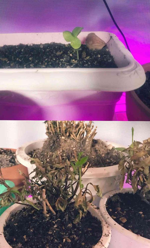 コットンの芽と切り戻ししたチョコレートコスモスが目に見える程に育ってきました!😊