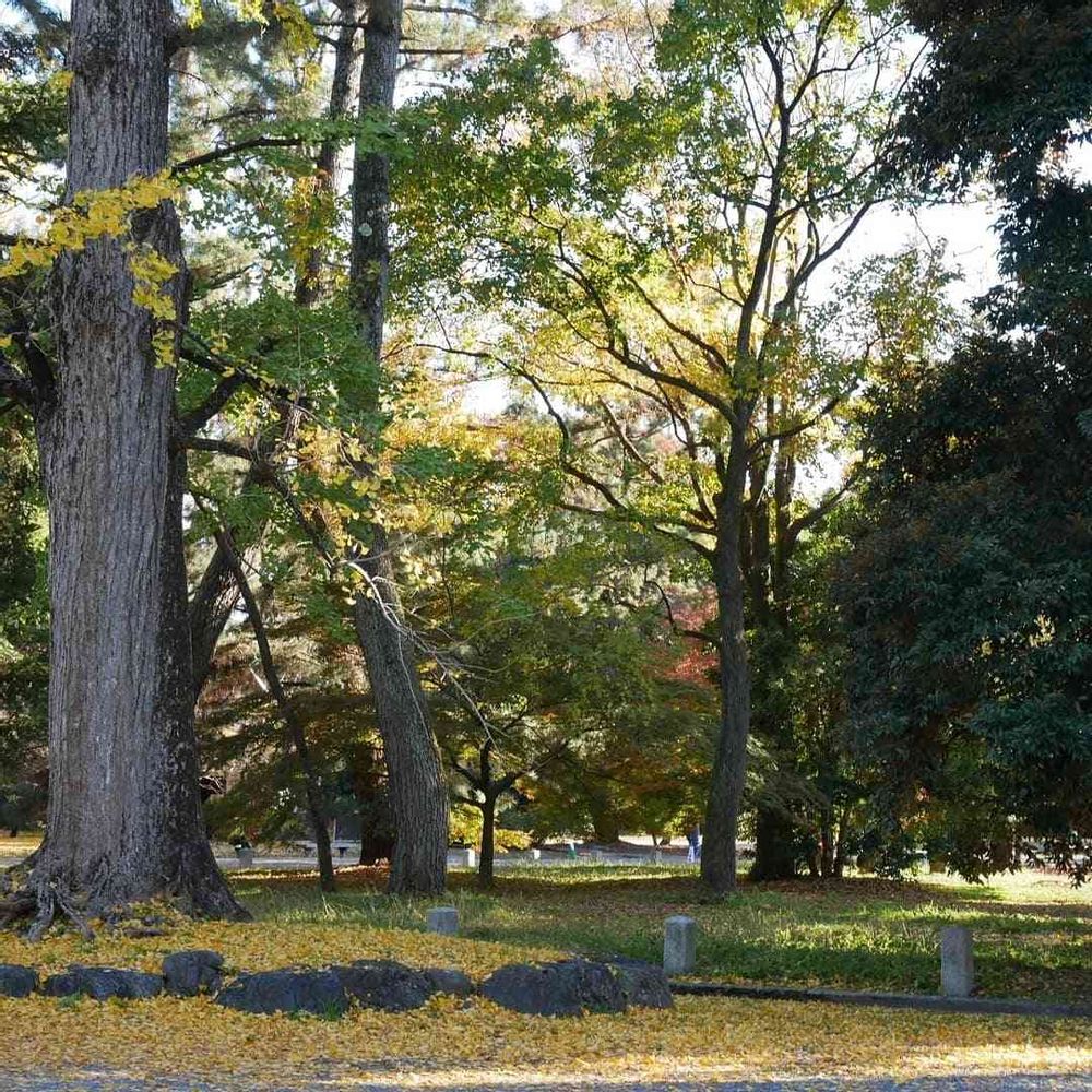 京都御所のいちょうの木、つもる落ち葉が美しかったです。