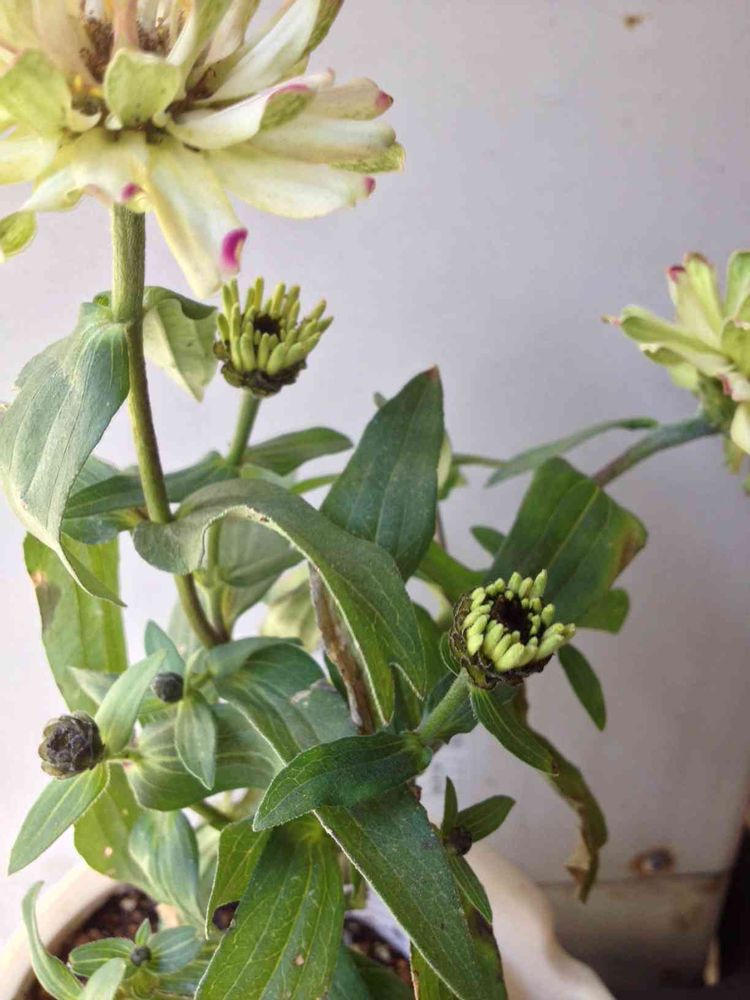 この写真の後、大量のアブラ虫にやられそうになったが何とか切り抜けて時期外れに咲くジニア。