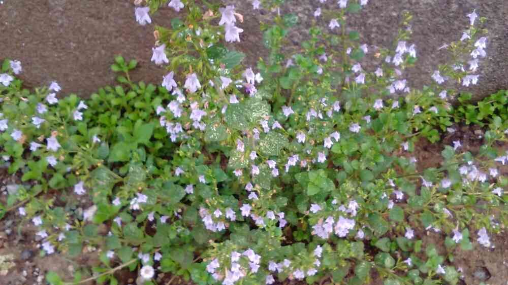 ちょこんと咲いてる薄紫の小花🌼きっと雨のお水だけで咲いてて、もともとの土からだけで栄養とってるんだろうなぁ💖
