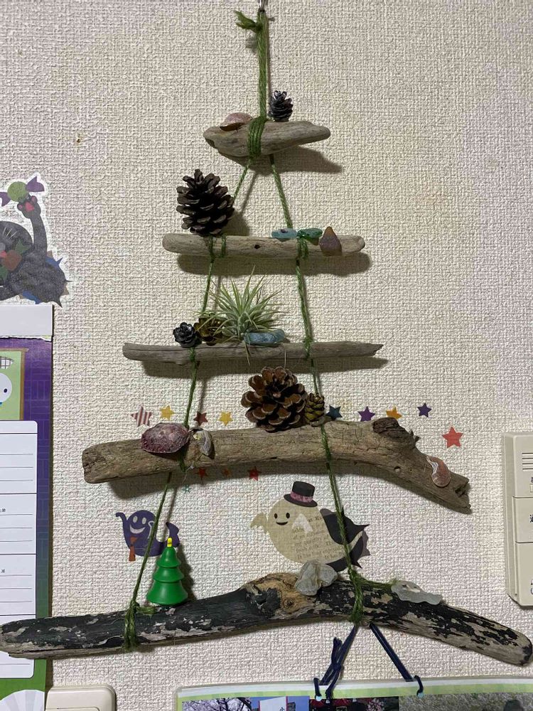 兄ちゃんは立体工作、私は流木のクリスマスツリー🎄久しぶりのお出かけ💕🎼♪