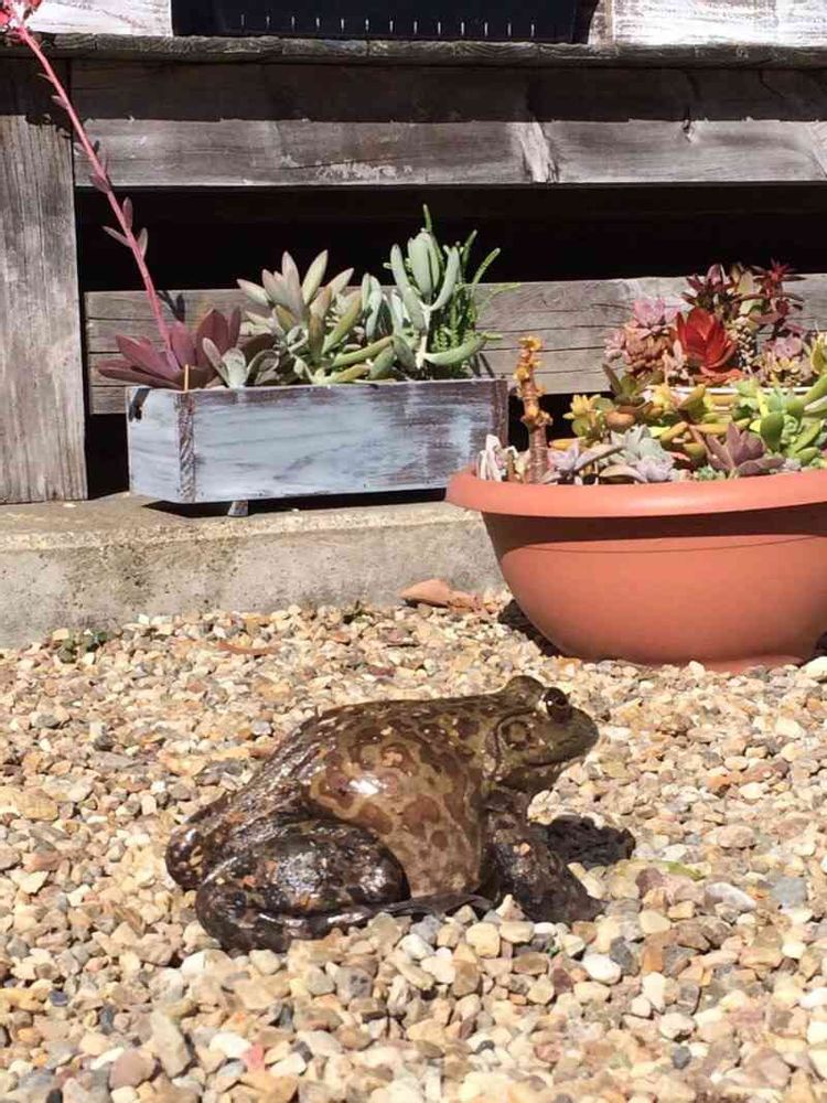 棚の奥にあった、ぶっ込み鉢を日向ぼっこさせてたら…。
