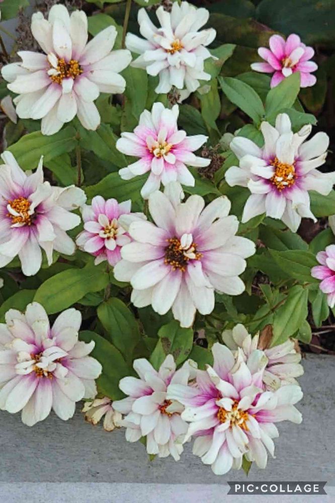 ジニアがまだがんばって咲いていました!!ピンクから段々白になっていき、ピンクは中央に残ります。