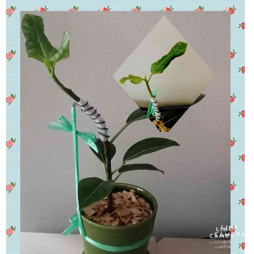 一か月ほど前にお迎えしたフィカスアルテシーマさん💚今流行の曲がった茎を作ろうと挑戦中❣️