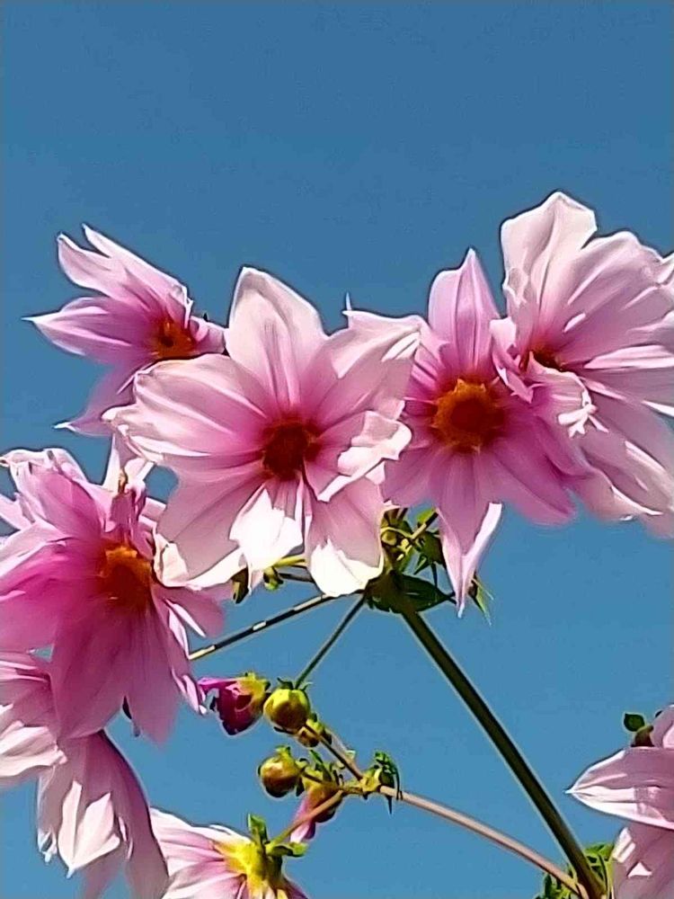大輪の皇帝ダリア、碧い空に映えてますね💙💗💙