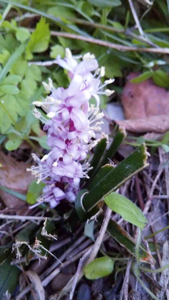 だからツルボじゃないね!葉っぱが有るんじゃヤブラン?葉っぱは硬かった。茎が短く、花の形も違うみたい😵