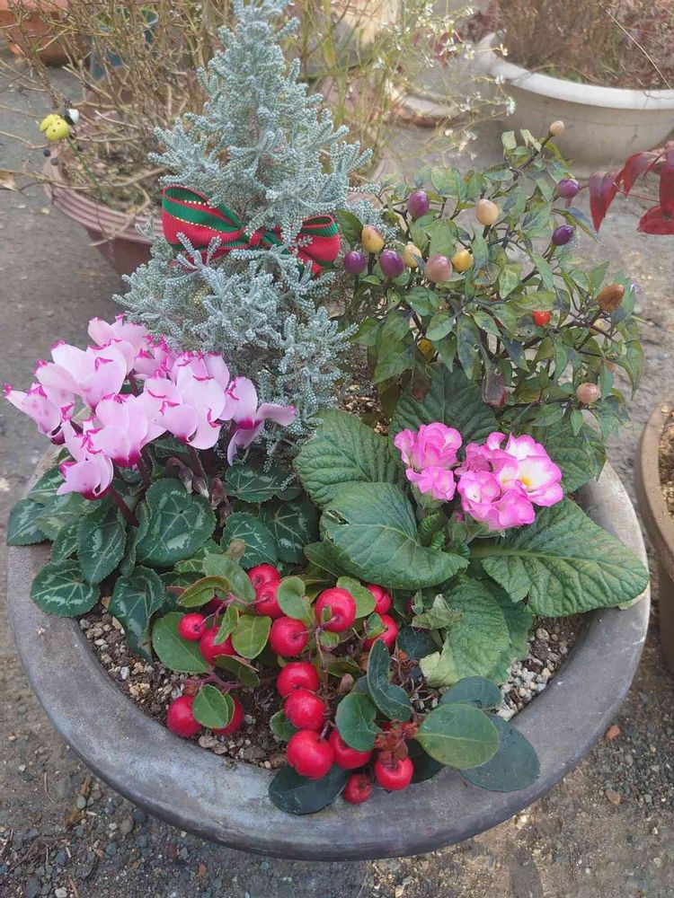 先程投稿したガーデンシクラメンを使ってチョチョイのチョイで寄植えしました