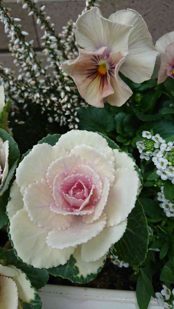 葉牡丹、カルーナ、アリッサムと寄せ植えにしてみました💕