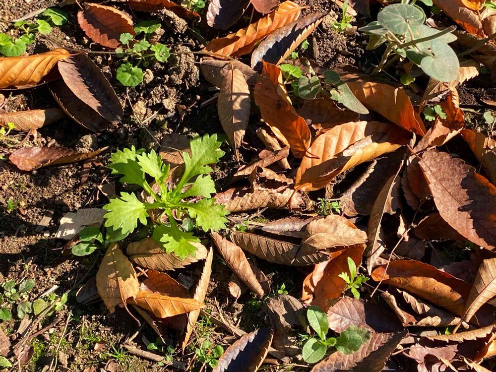 こぼれ種からのノースポール、今年はいつもよりたくさん芽を出しています。