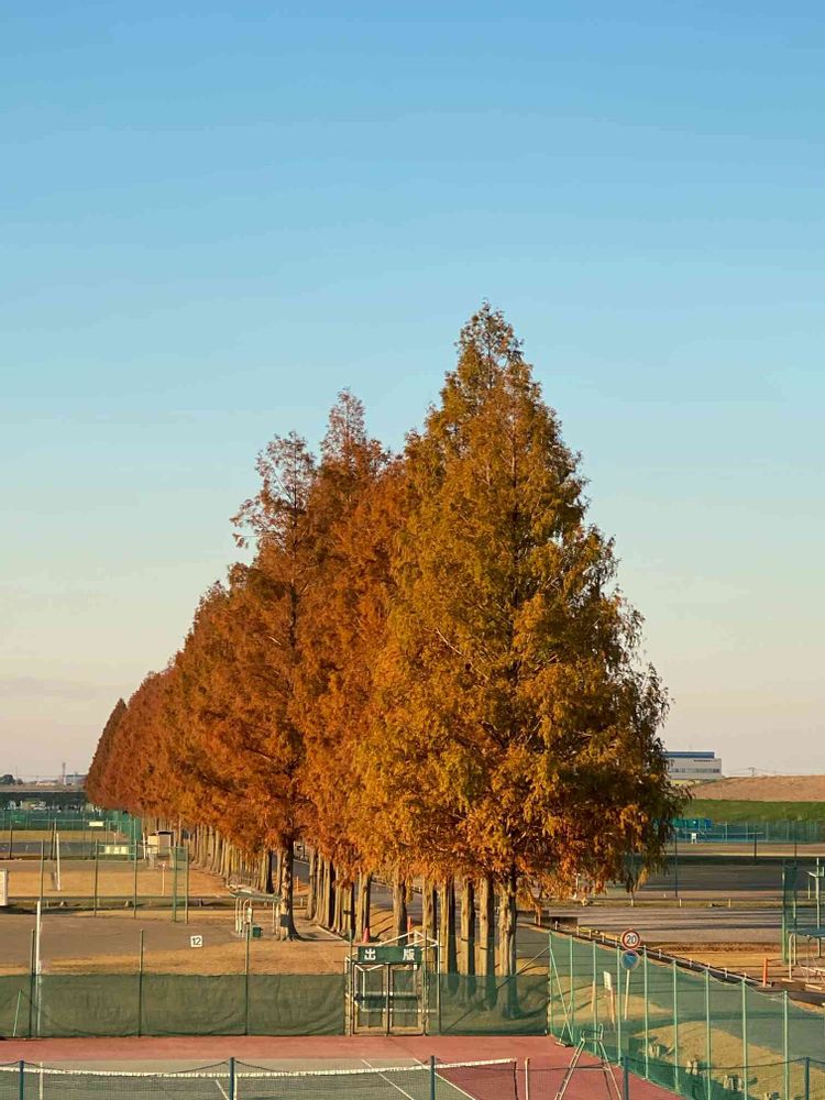 色づいたメタセコイア、きれいに並んで素敵ですね~ヘ(^o^)/