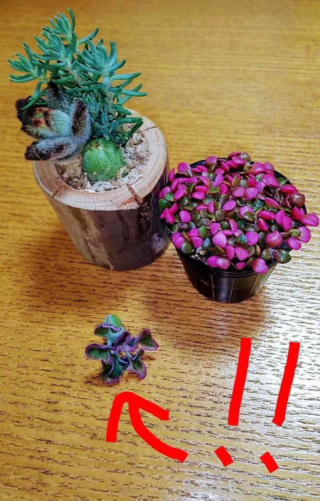 実は私、七宝樹が大好きで錦含めて7〜8ぐらい育てているのですが、特徴としては多肉にしては水が好きな事です。あと、寒いのも好きです。なので寄せ植えにありがちな難点で、お隣のモフモフさんとは管理が