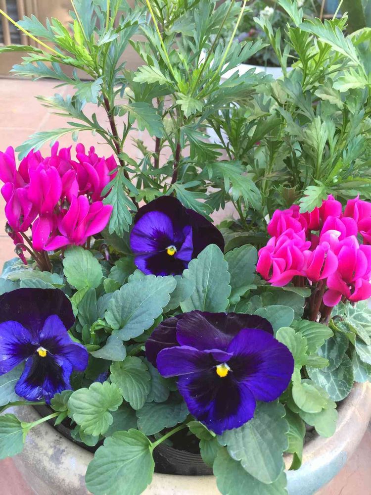 ガーデンシクラメン、パンジー、マーガレットコスモス等の寄せ植え素敵です☺