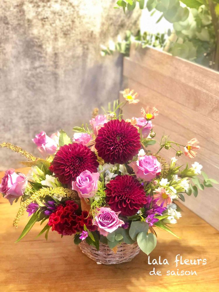 ララフルールさんのダリア,バラ,リンドウの投稿画像