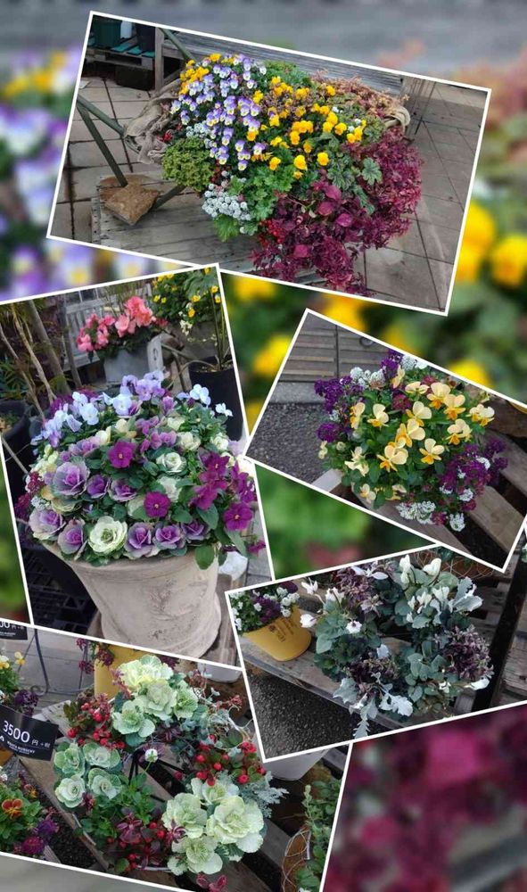 お出かけ先,葉牡丹寄せ植え,寄せ植えビオラの投稿画像