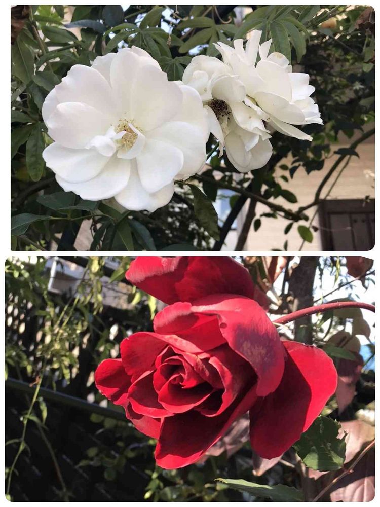 名無しの真っ赤なバラは首が垂れてて どちらもいまいちですが せっかく撮ってくれたので アップすることにしました 🌹🌿✨