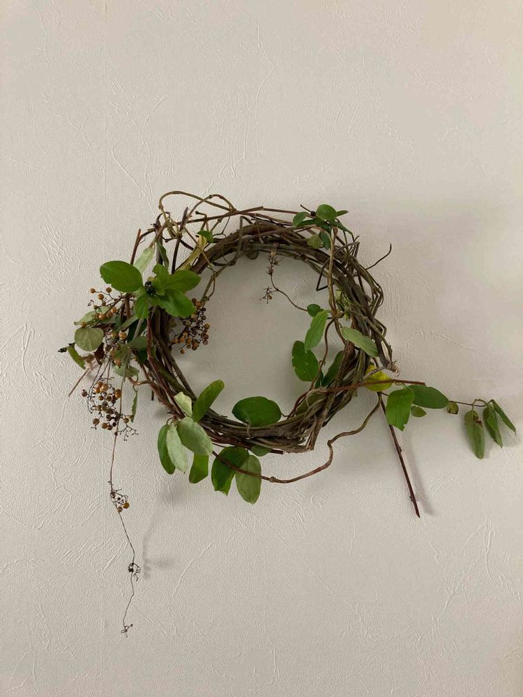 幼稚園の先生が作ったリースに植物を巻きました😄