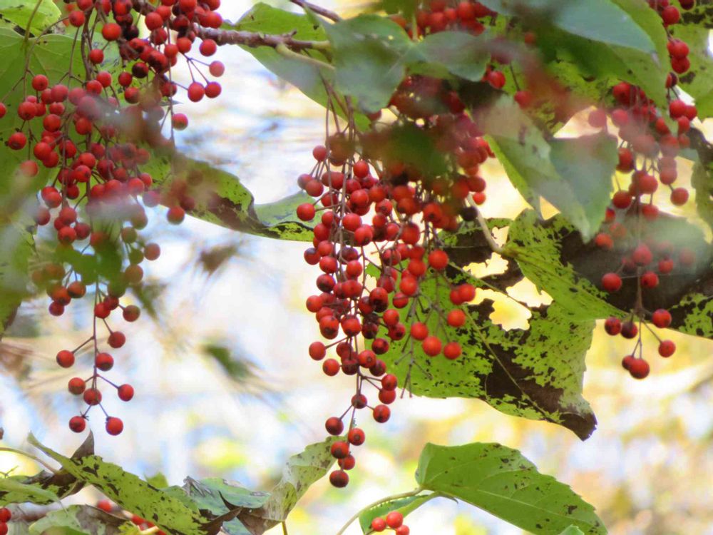 昭和記念公園のプール横で、初めてイイギリを見ました。曇り空で落葉していたから、赤い実が映えて綺麗でした。