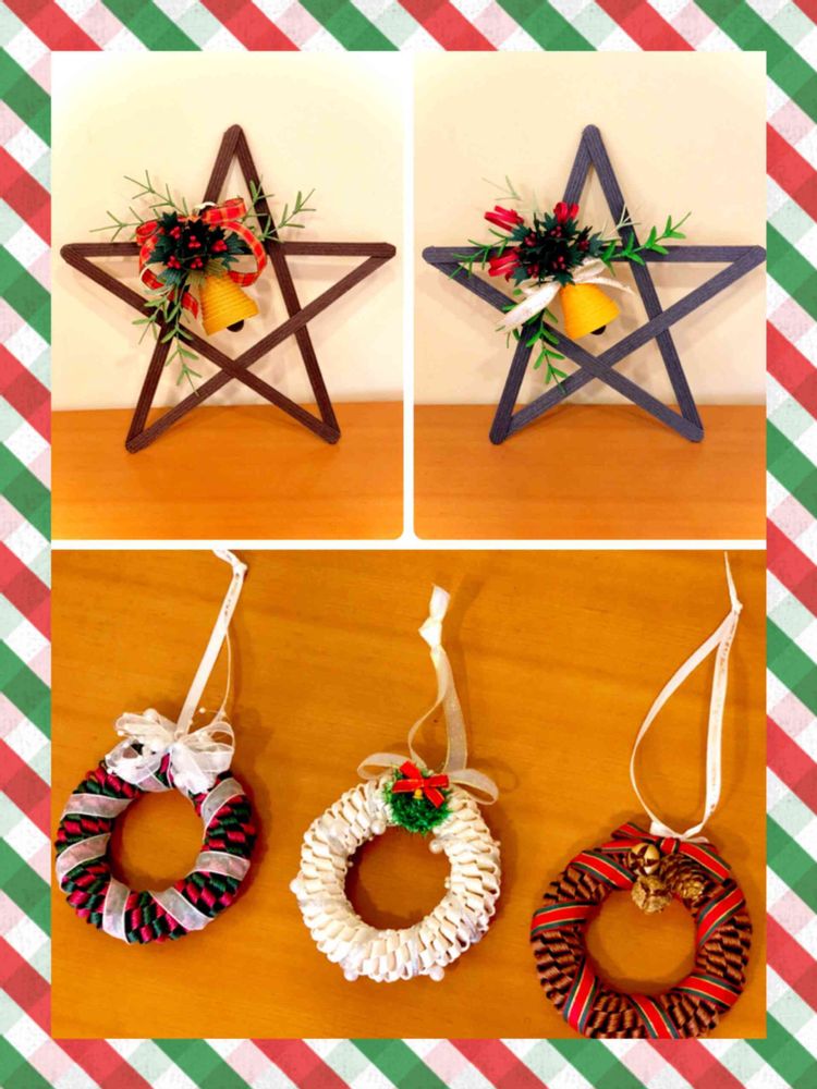 投稿した星形のリースも、星形だけエコクラフトで作って、飾りは出来たものでいいのでどうでしょうか?