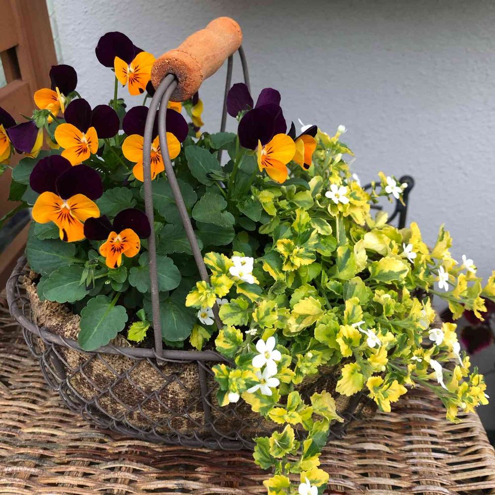 鉢植えばかりだとワンパターンになってしまう寄せ植えも、バスケットに植えるとちょっとお洒落に見えるからGOOD👍