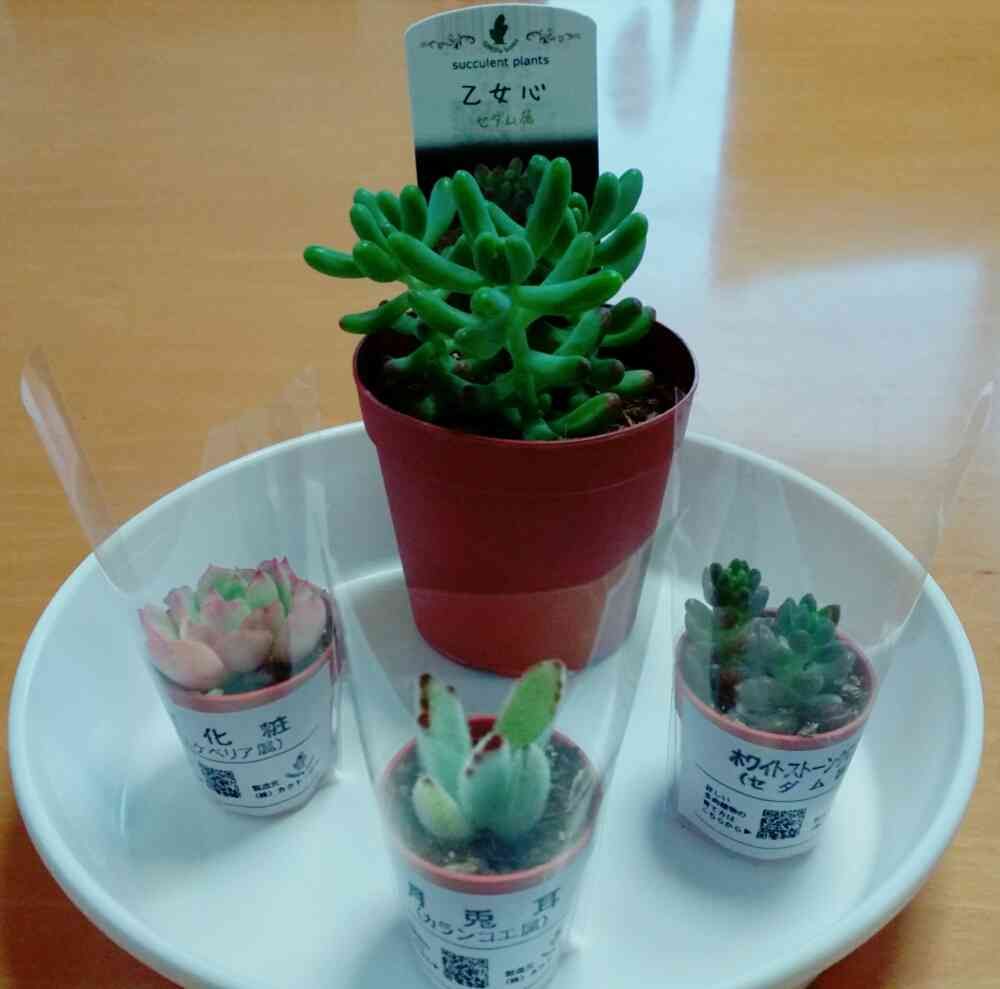 多肉は全く興味がなかったのにGSでたくさんの可愛い多肉を見てるうちに欲しくなって、今日は4つお持ち帰り😍😍