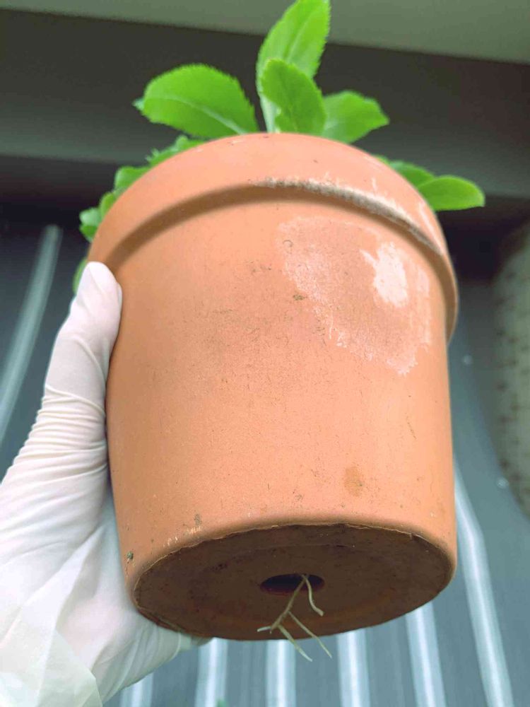 10月上旬に苗を鉢に植え替えたクリスマスローズ、みどりのまとめにもアップしましたが、早くも根がそこから出てきてしまいました。鉢をサイズアップした方が良いでしょうか?