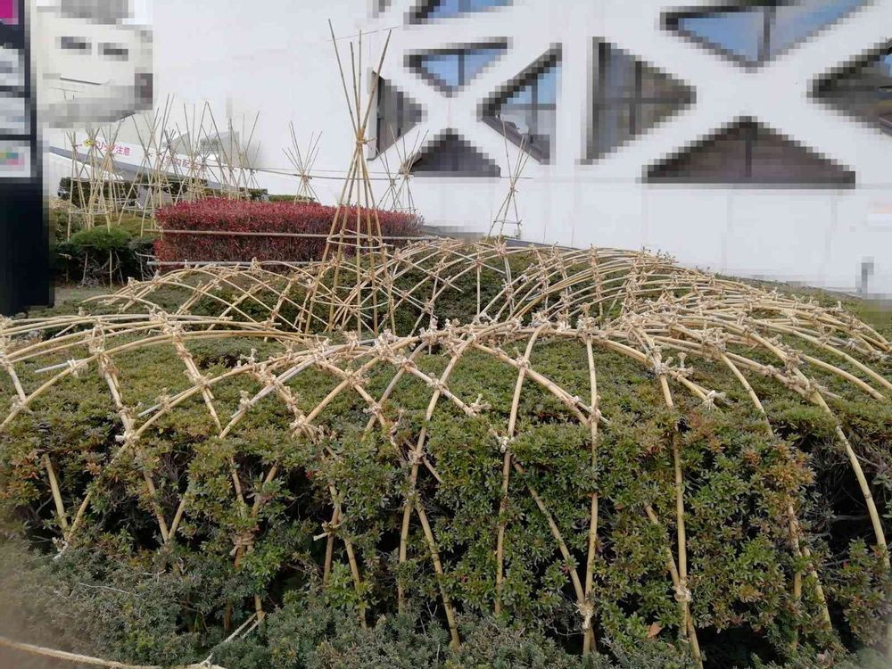 私もびっくり👀の仕上がりでした。四角い冬囲いはたくさん見てきましたが、ドーナツ🍩型ははじめてだったので、車を止めてパチリ👀📷✨してきました!