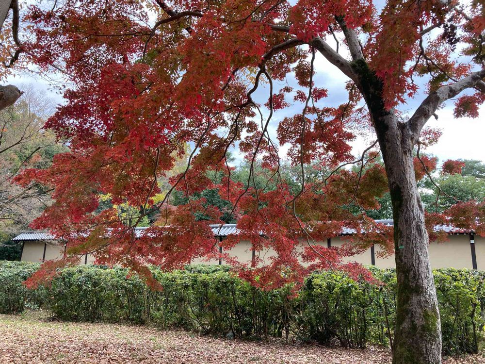 京都御苑の紅葉④ 楓でしょうか。奥手に見える塀はこの後見学した京都迎賓館の築地塀です。