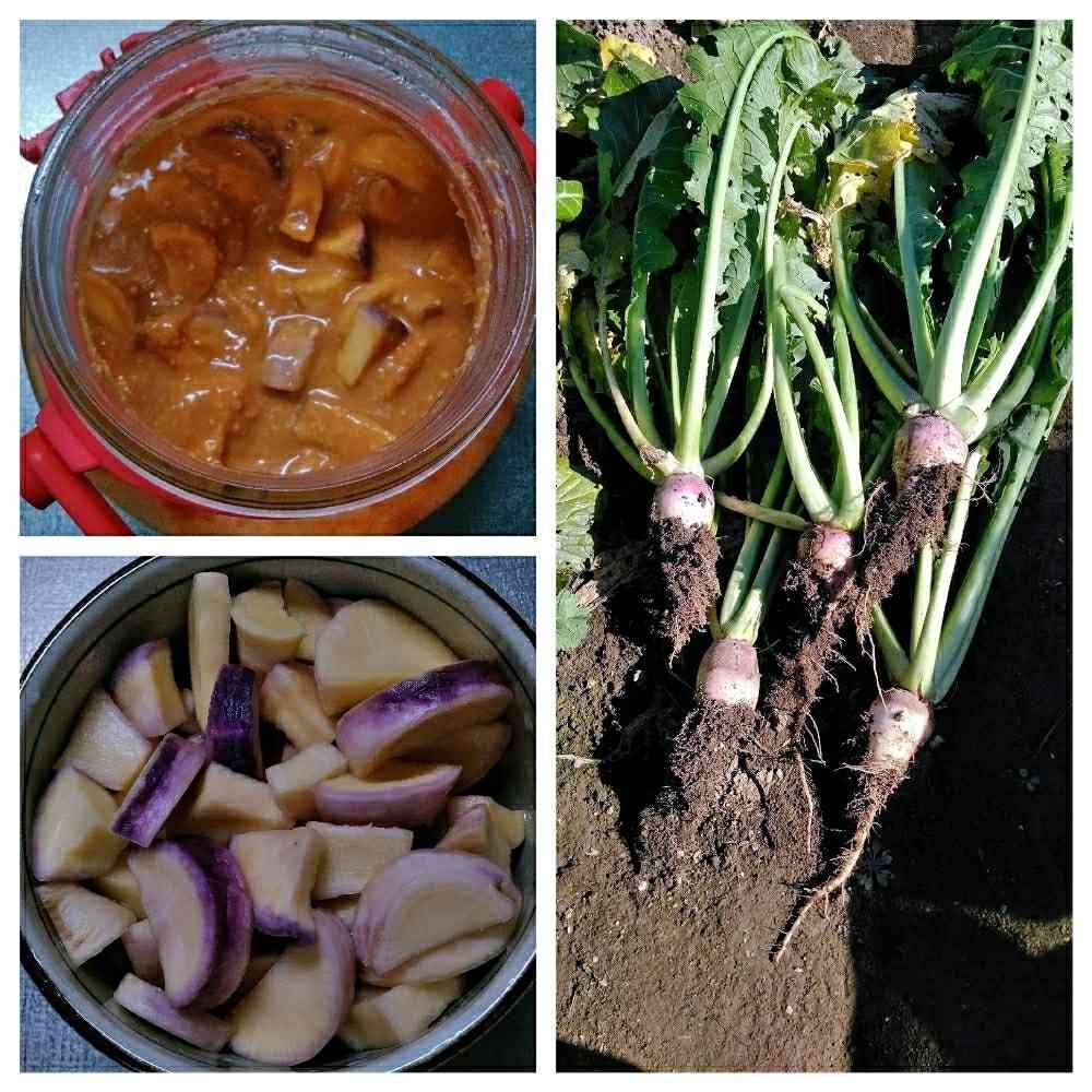 野沢菜の根(カブ)を、味噌漬けにしました。ネットで調べても、野沢菜の根を食べるのは、ほとんどない。少し辛くて、これは酒の肴にいける~。市販の味噌漬けの素に漬けるだけ。クックパッドに投稿しました。