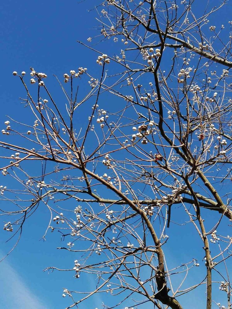青空にナンキンハゼの実(真珠を散りばめたような…景色が好きで♡)