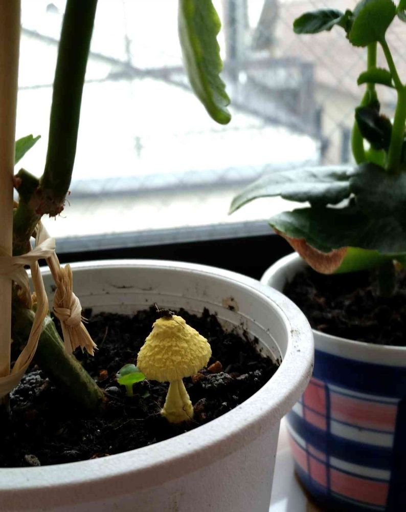 昨日のお花がカランコエで、カランコエの鉢に出たキノコ🍄という連想です。