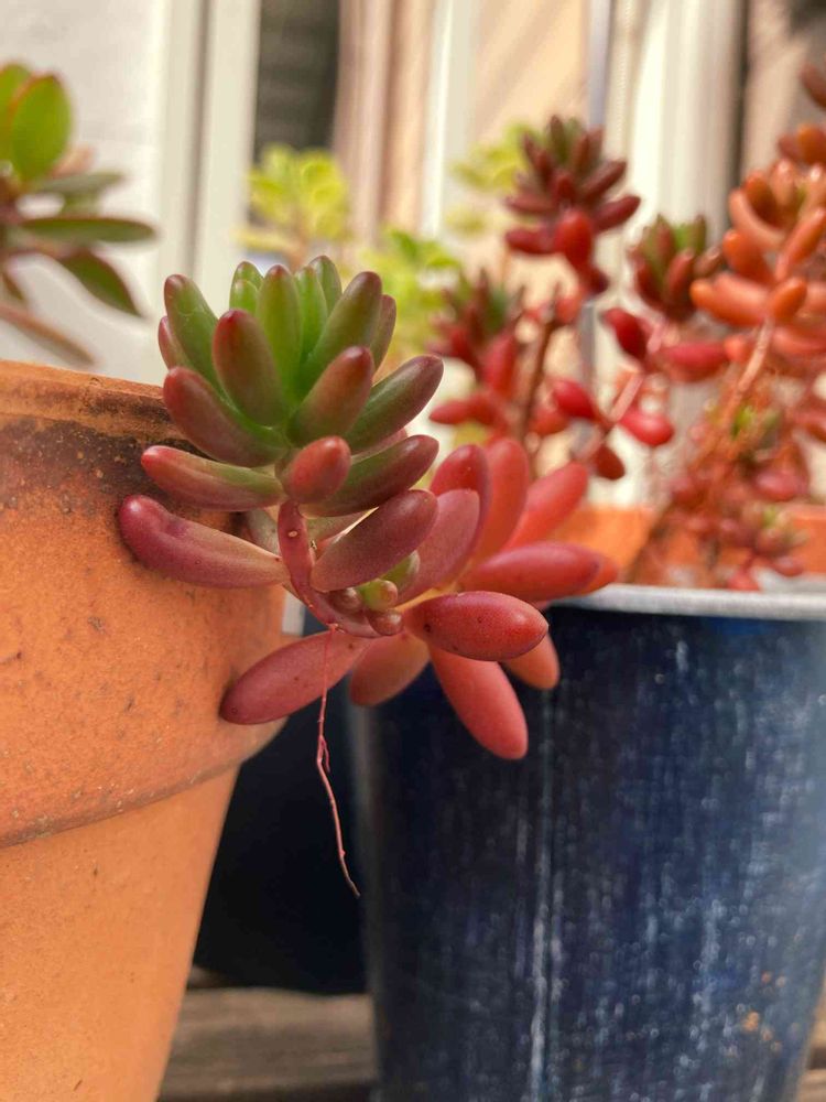 紅葉してます🍁なぜか真っ直ぐに伸びずに鉢の外に出ちゃう子が多い。