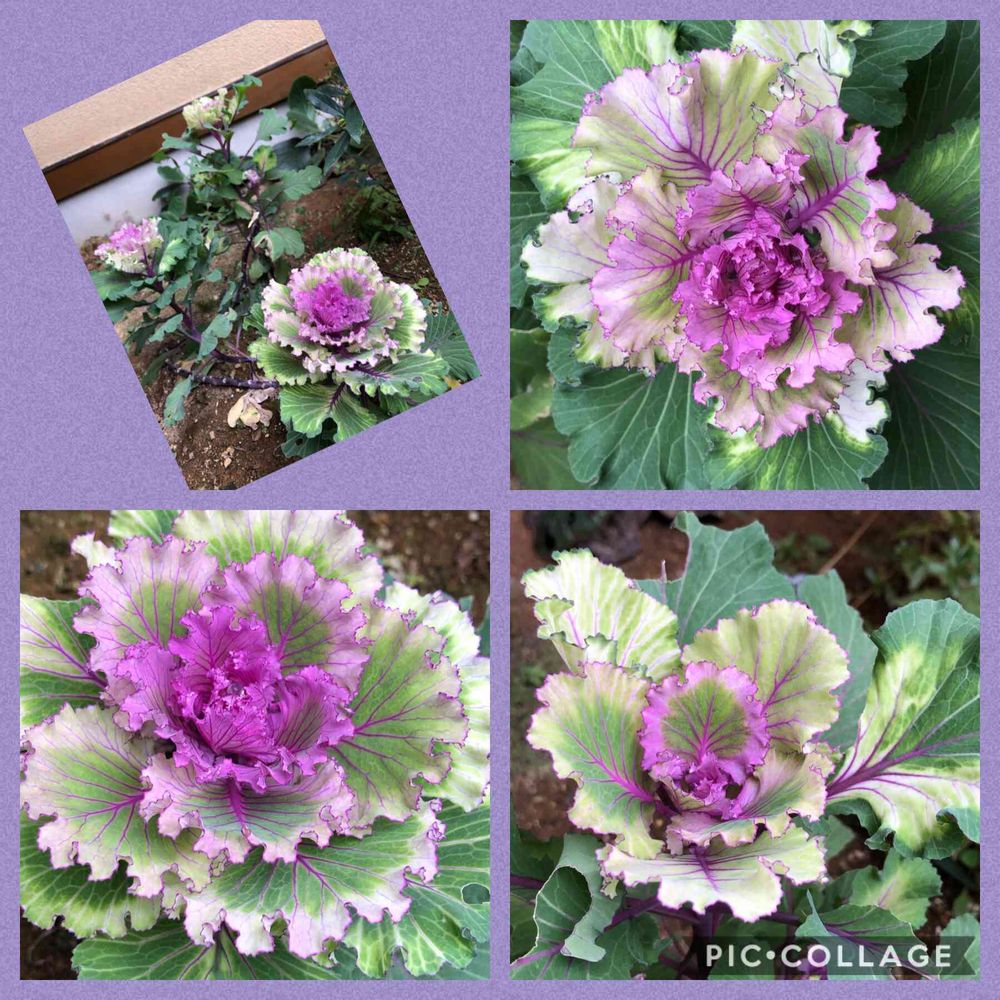 去年の寄せ植えの葉牡丹の一本が見事な踊り葉牡丹に✌️🎶