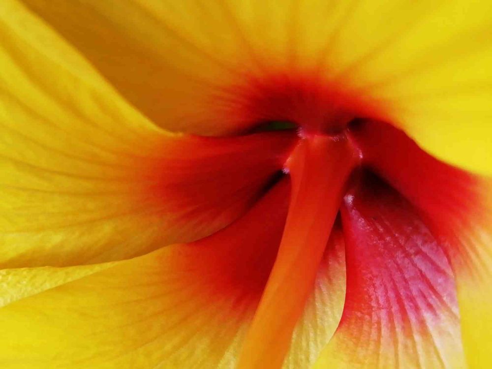 ハイビスカスの中心部を見ていたら、顔に見えてしまいました。笑っている🎵