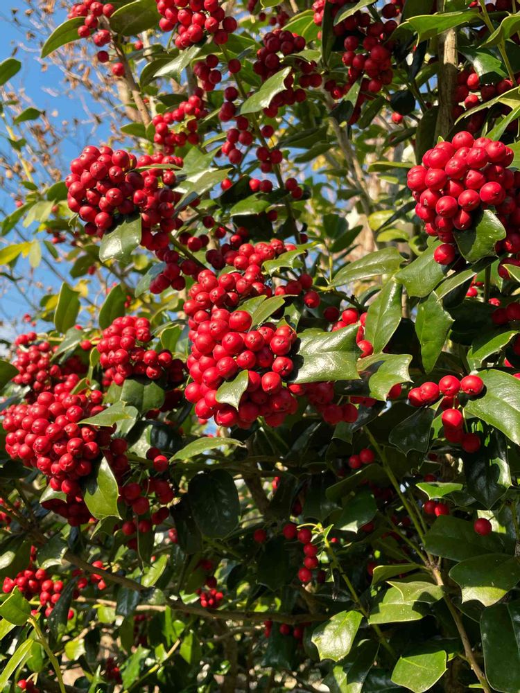 クリスマスホーリー(西洋ヒイラギ)真っ赤に色づきましたー💕