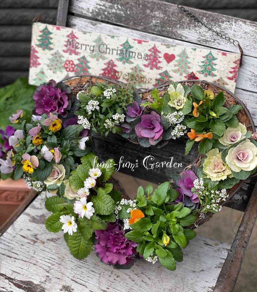 寄せ植えのハンギング✨ジャストクリスマスに溢れ出そうです😄