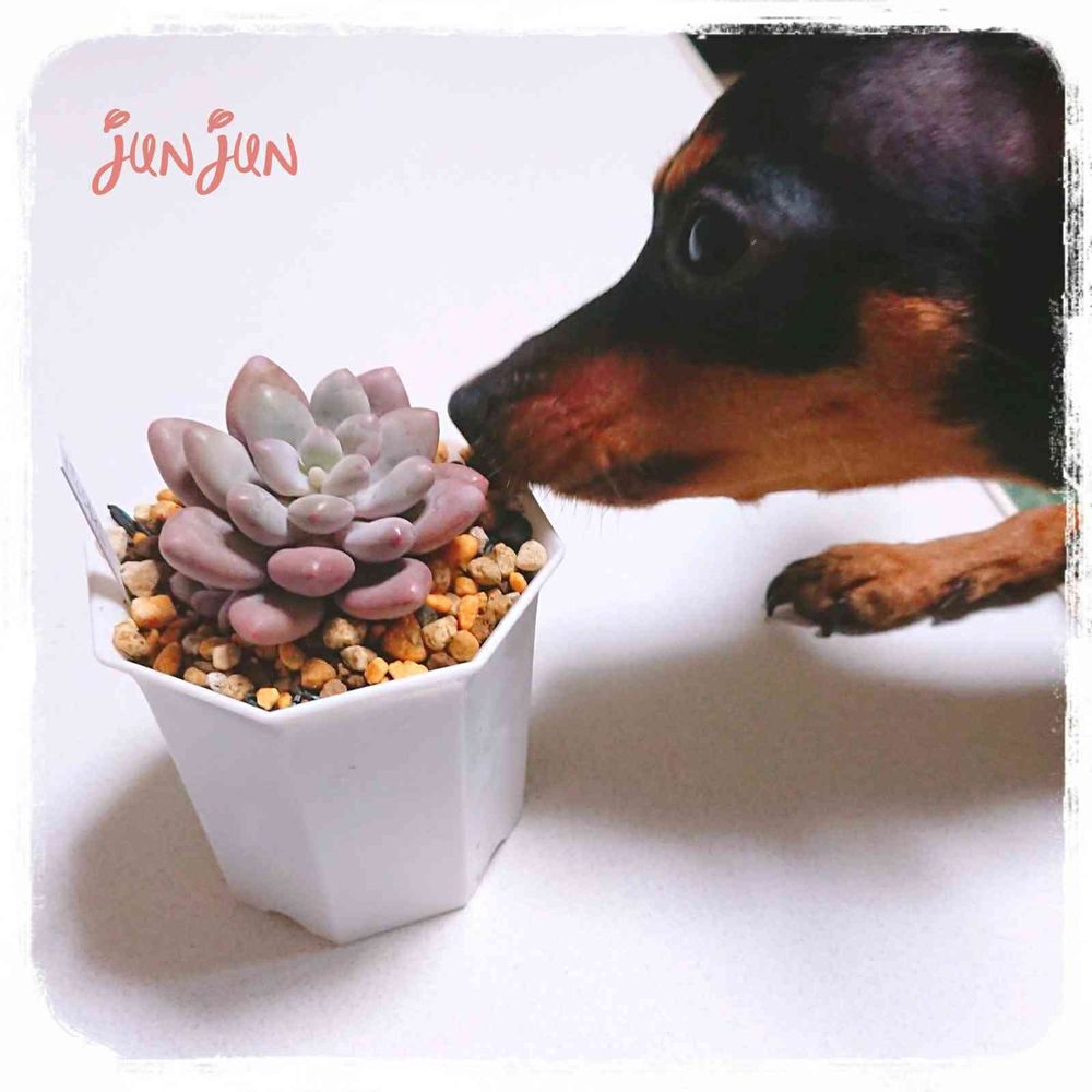 お散歩で玄関開けた途端に多肉棚クンクンからの油断したらパクっ💧笑
