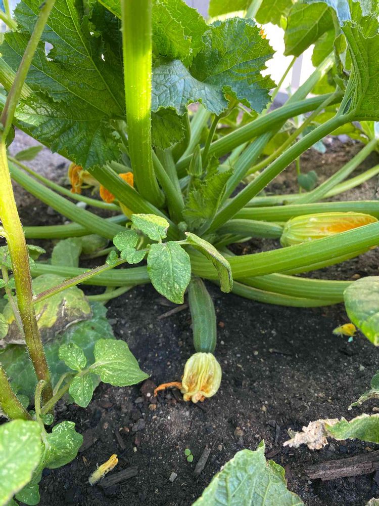 私も ズッキーニがなってるところ初めて見ましたー😁 茎もかなり立派でググってみると食べられるようなので 調理するのも楽しみです。